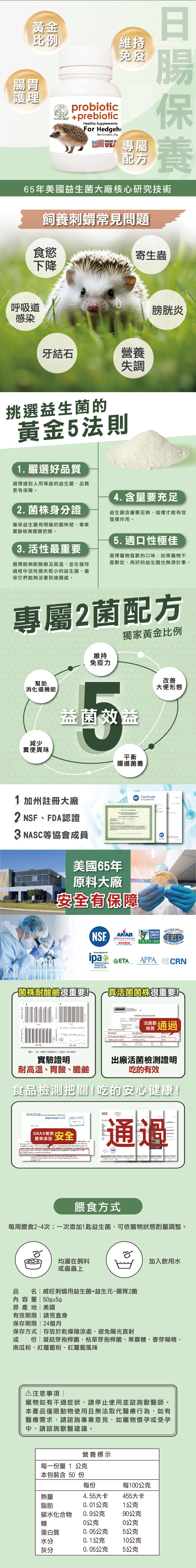 • 品  名:刺蝟用益生菌+益生元-腸胃2菌配方